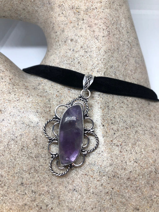 Vintage Handmade Silver Deep Purple Amethyst Pendant