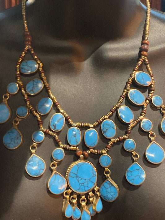 Vintage Hand Wrapped Tibetan Blue Howlite Necklace.