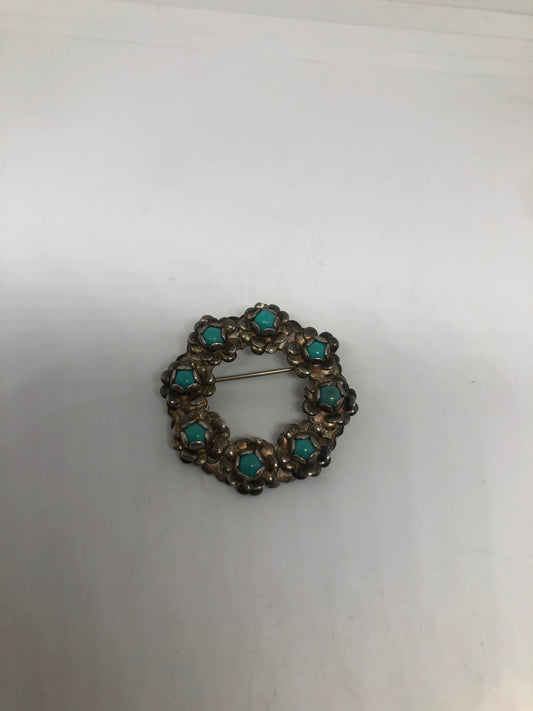 Vintage Turquoise Flower 925 Sterling Silver Brooch Pin