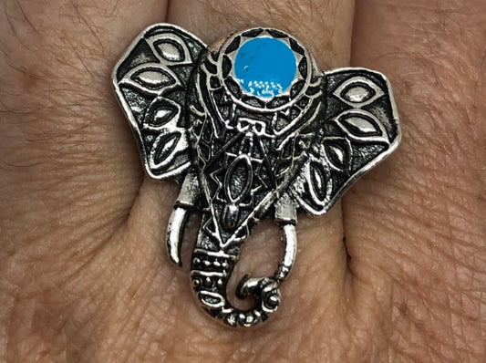 Vintage Turquoise Elephant Ring, White Bronze Jewelry