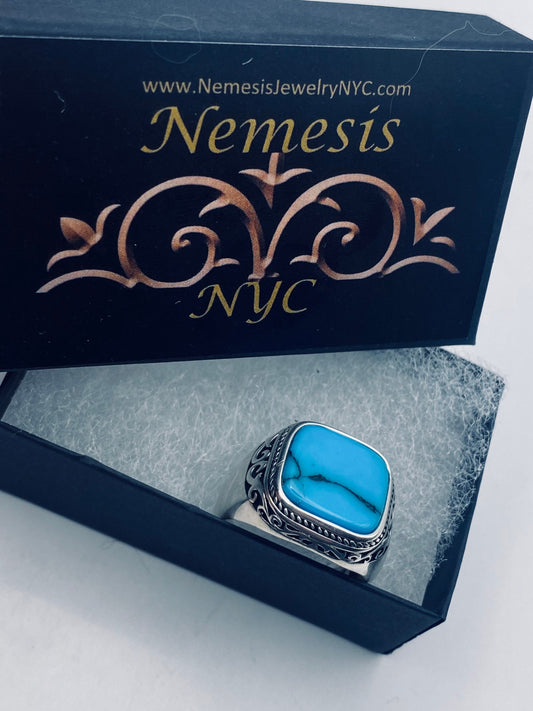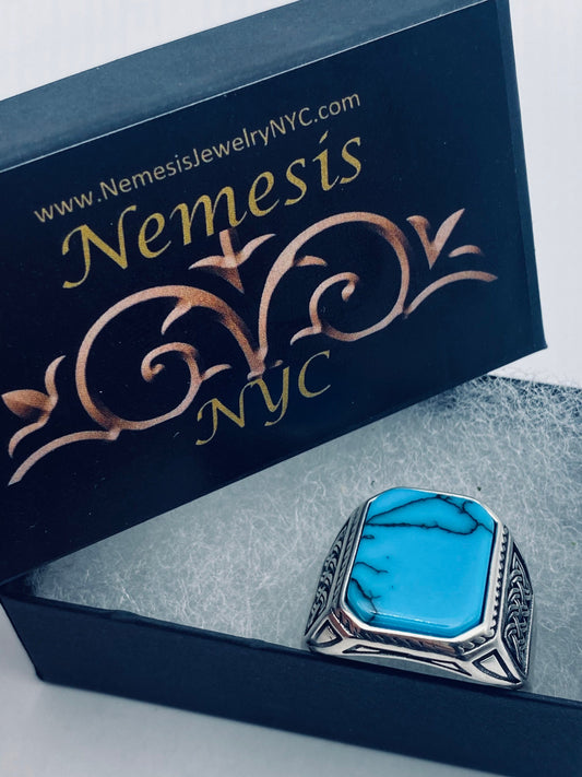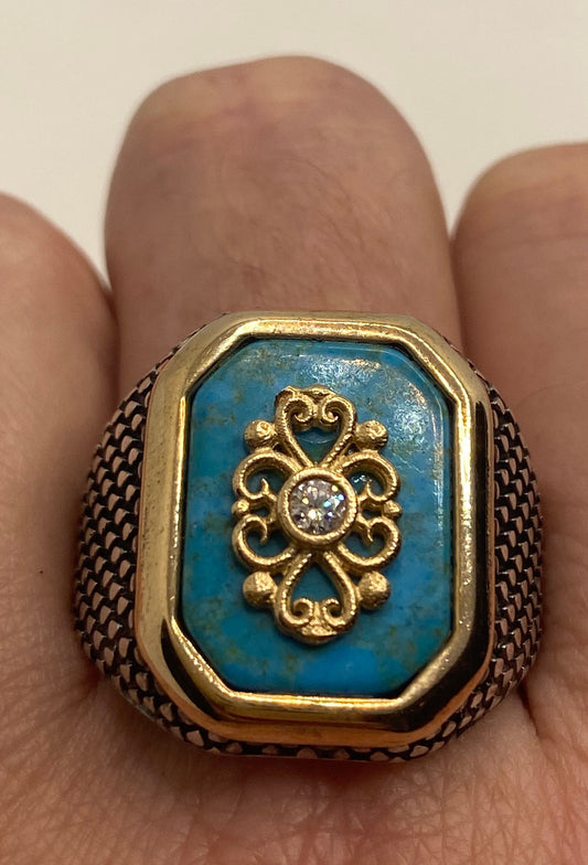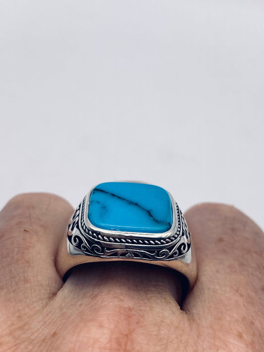 Vintage Turquoise Mens Ring in 925 Sterling Silver
