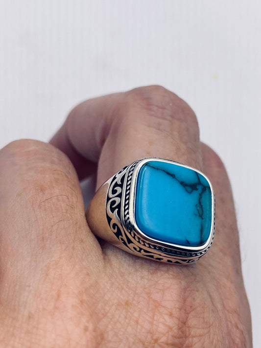 Vintage Turquoise Howlite Mens Ring in 925 Sterling Silver