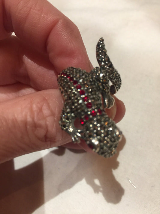 Vintage 1970's Sterling Silver red Crystal and marcasite Lizard Ring