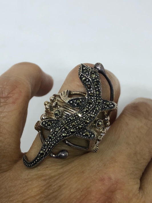 Vintage 1970's SterlingSilver marcasite Lizard Ring