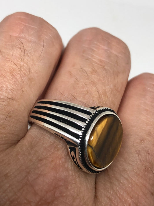 Vintage 1970 Gothic Sterling silver Genuine Tigers Eye Mens Ring