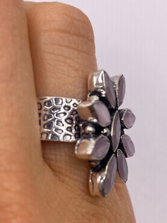 Vintage 1970's Purple Amethyst White Bronze Silver Ring