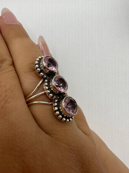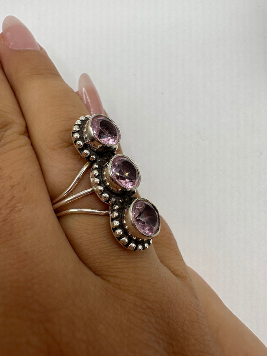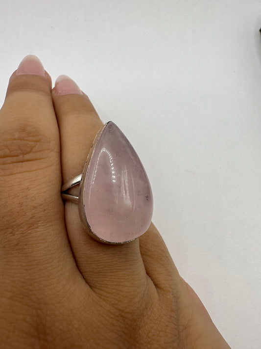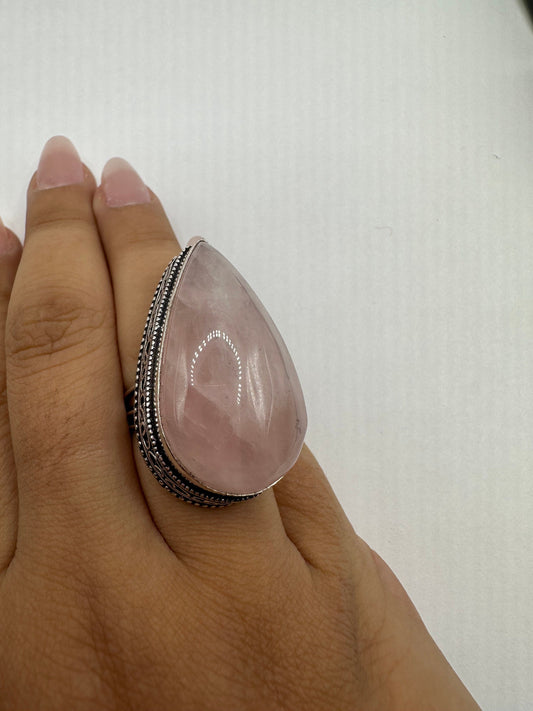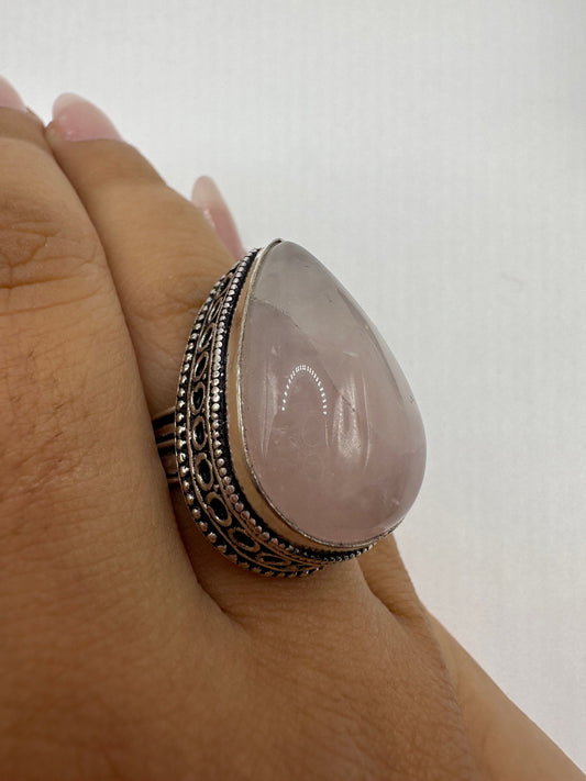 Vintage 1970's Genuine Rose Quartz Silver Statement Ring