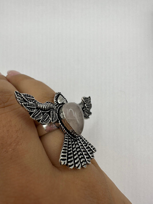 Vintage 1970's Genuine Rose Quartz White Bronze Silver Ring