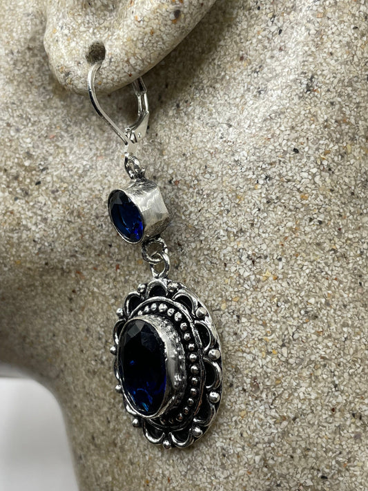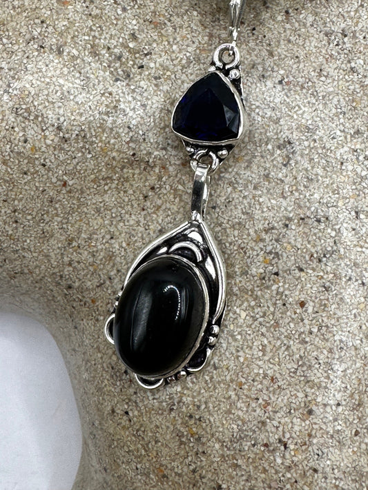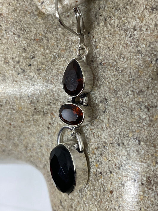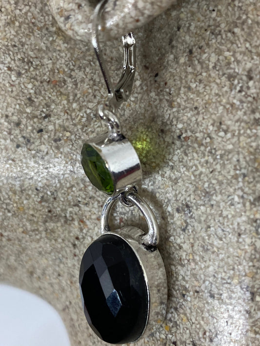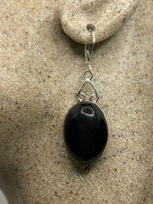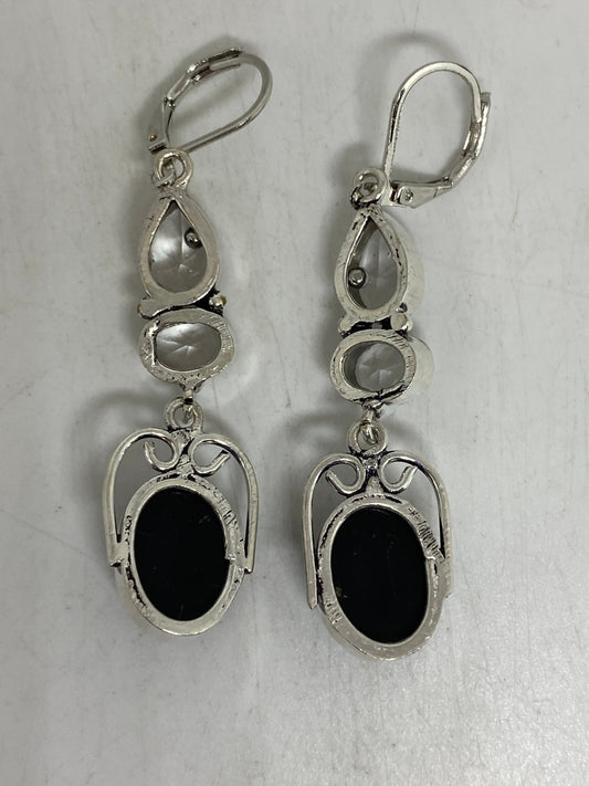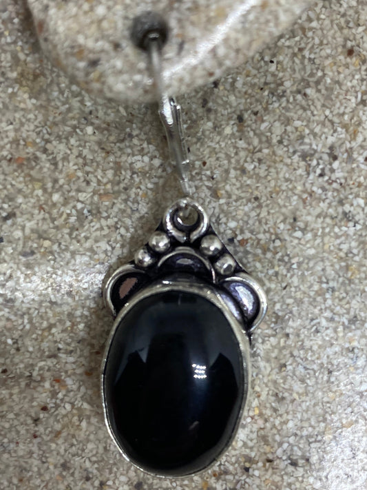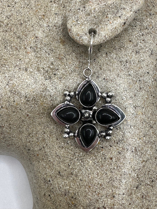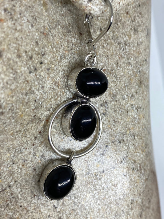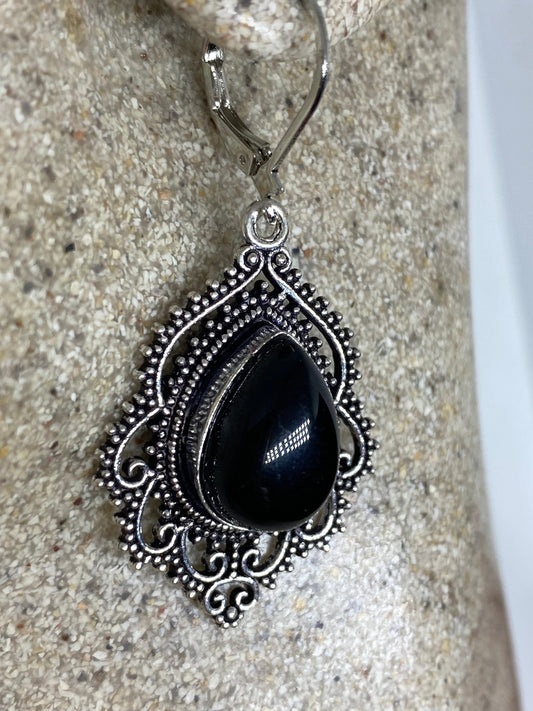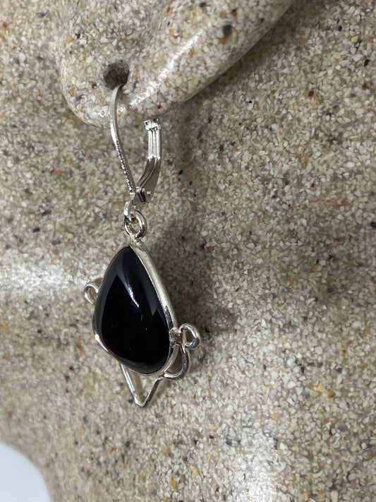 Antique Vintage Black Onyx 925 Silver Dangle LeverBack Earrings