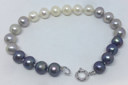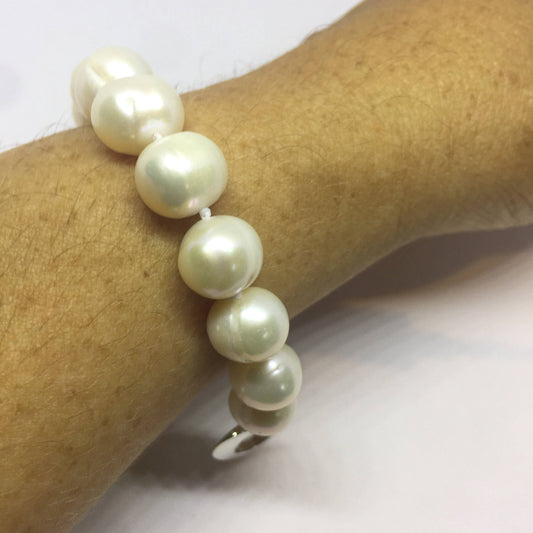 Vintage Pearl Bracelet in 925 Sterling Silver with Heart Toggle
