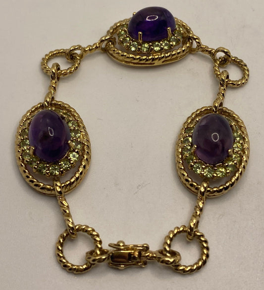 Vintage Purple Amethyst Citrine Bracelet Golden 925 Sterling Silver