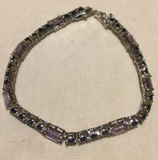 Handmade Genuine Purple Amethyst and Sapphire 925 Sterling Silver Tennis Bracelet