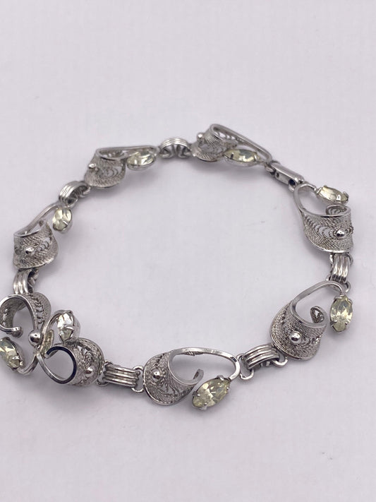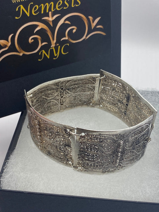 Vintage 925 Sterling Silver Filigree Flower Bracelet