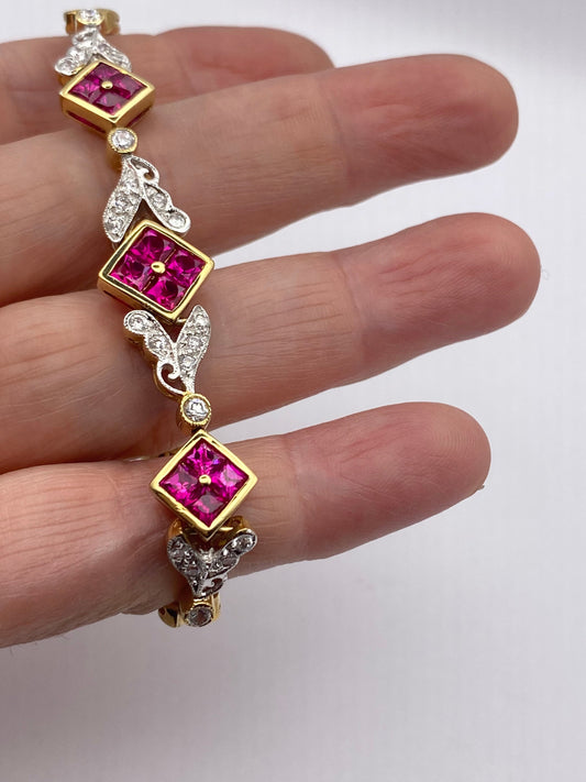 Vintage White Sapphire Ruby Crystal Golden 925 Sterling Silver Bracelet