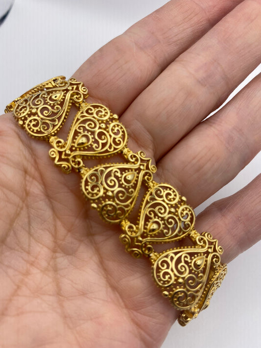 Vintage Gold Filigree Tennis Bracelet in 925 Sterling Silver