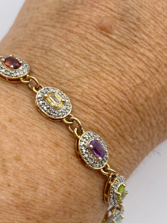 Vintage Mixed Gemstone Tiny Diamond 925 Sterling Silver Tennis Bracelet