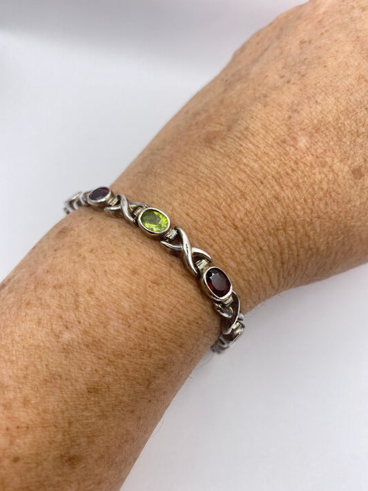 Vintage Peridot Garnet 925 Sterling Silver Tennis Bracelets