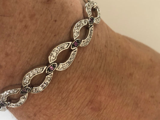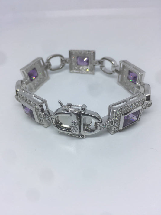 Vintage Amethyst Bracelet 925 Sterling Silver Purple Deco