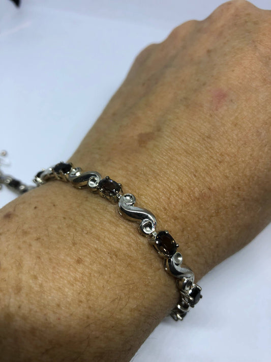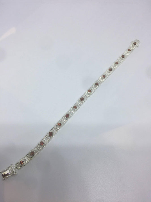Vintage Bohemian Red Garnet Bracelet 925 Sterling Silver