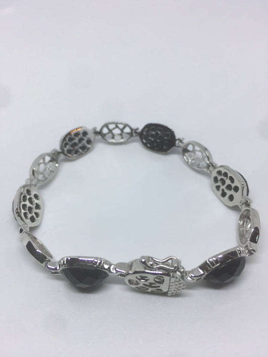 Vintage 925 Sterling Silver Black Onyx Bracelet