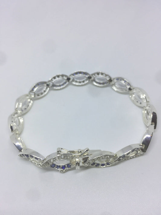 Handmade Genuine Blue Black Sapphires 925 Sterling Silver Tennis Bracelet