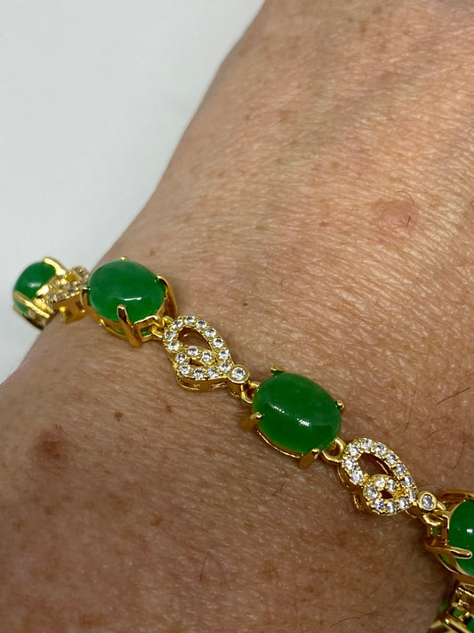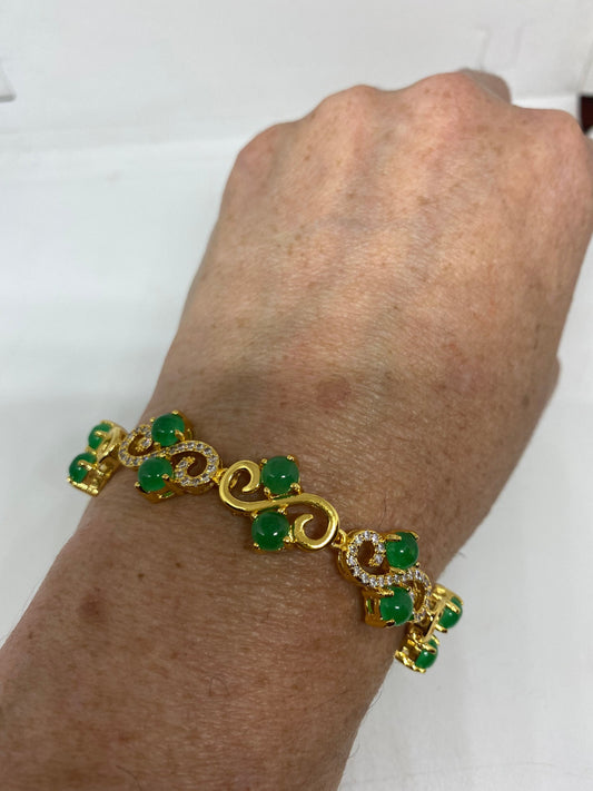 Vintage Snake Bangle Bracelet Gold filled Green Crystal Eyes