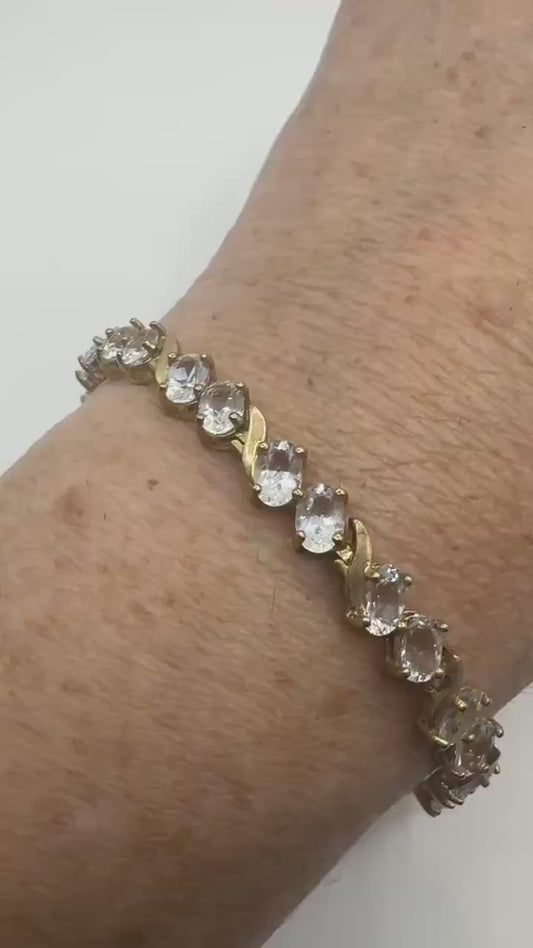 Vintage Pale Clear Aquamarine 925 Golden Sterling Silver Tennis Bracelet