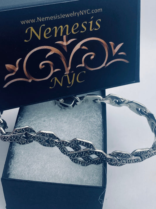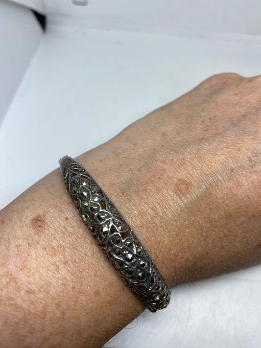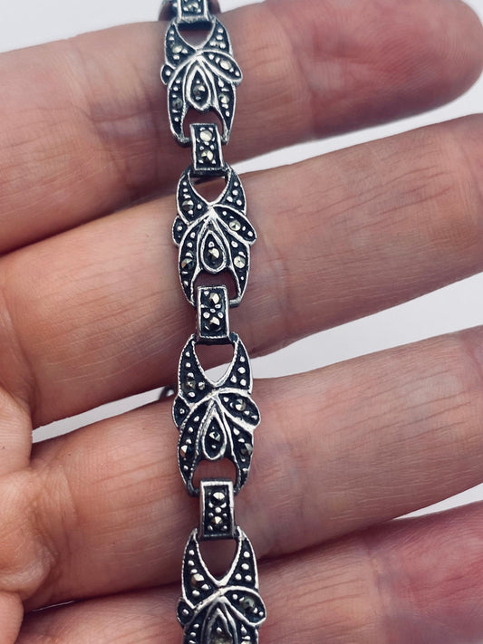 Marcasite Bracelet in 925 Sterling Silver Vintage Handmade 7.5 Inch