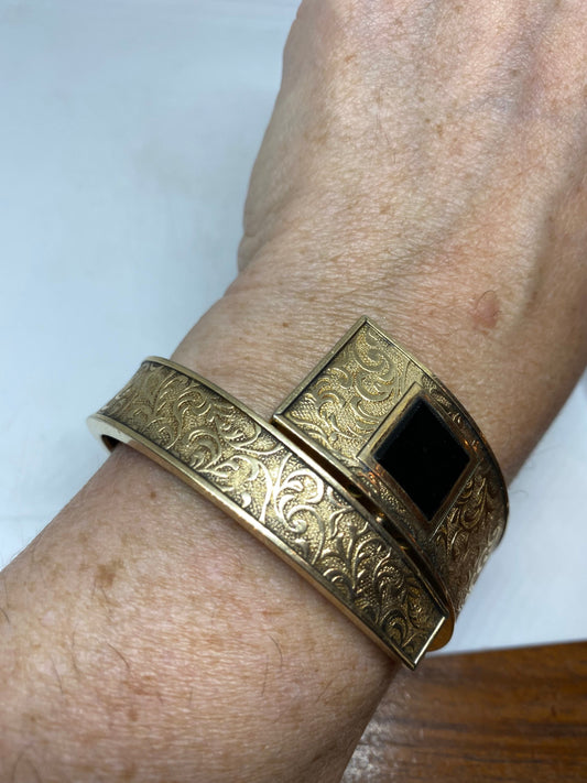 Vintage Bangle Bracelet Gold filled Black Onyx