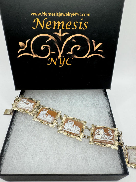 Vintage Cameo Bracelet 925 sterling silver marcasite