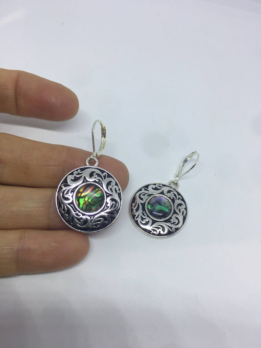 Vintage Handmade Silver Rainbow Abalone Earrings