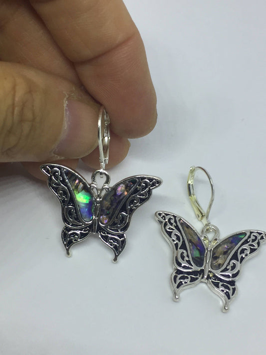 Vintage Handmade Silver Rainbow Abalone Butterfly Earrings
