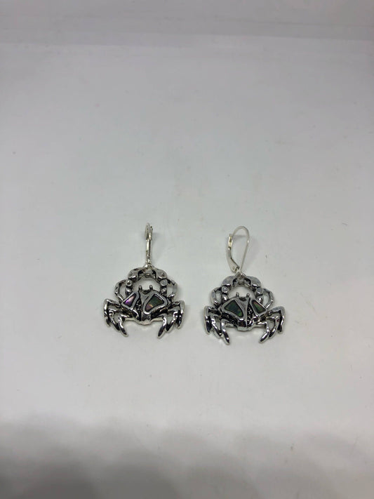 Vintage Handmade Silver Rainbow Abalone Cancer Crab Earrings