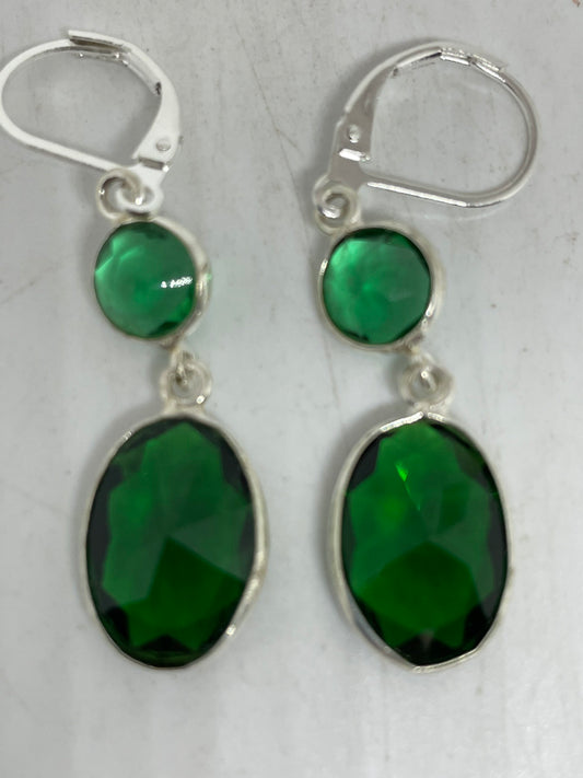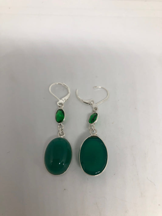 Antique Vintage Green Chrysoprase Silver Dangle Earrings