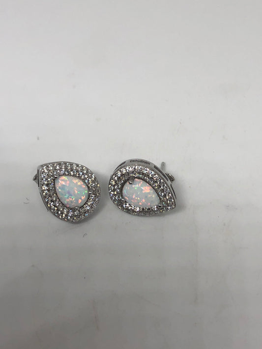 Vintage Blue Opal Earrings 925 Sterling Silver Stud Button