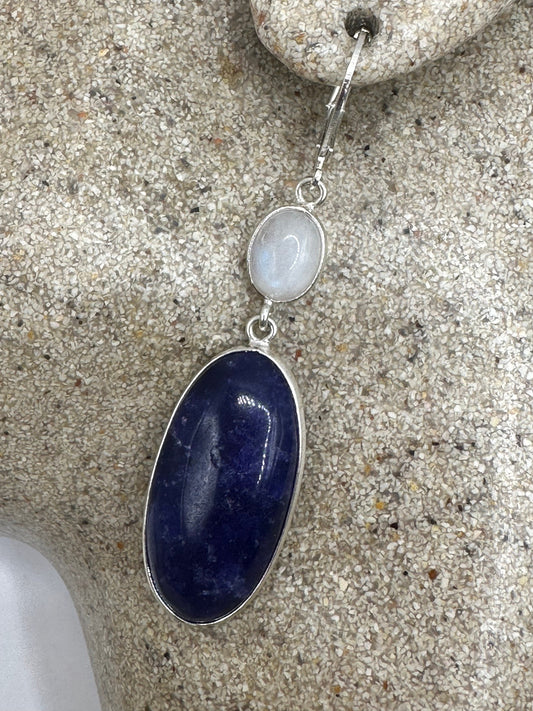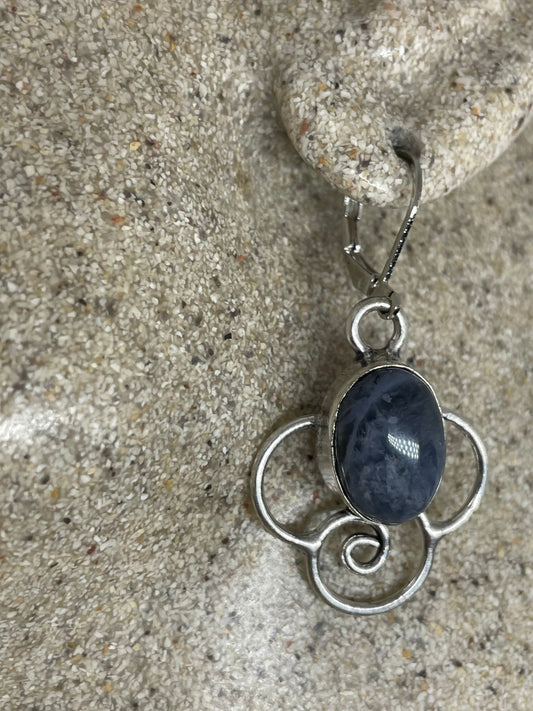 Vintage Blue Lapis Lazuli Earrings Silver Dangle