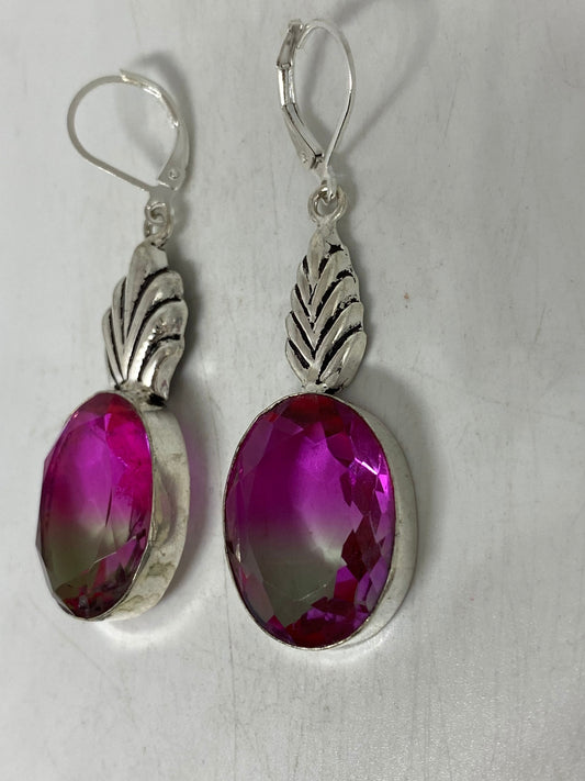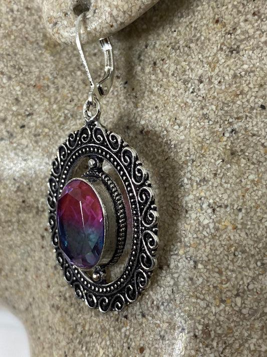 Antique Vintage Purple Volcanic Glass Silver Dangle Earrings