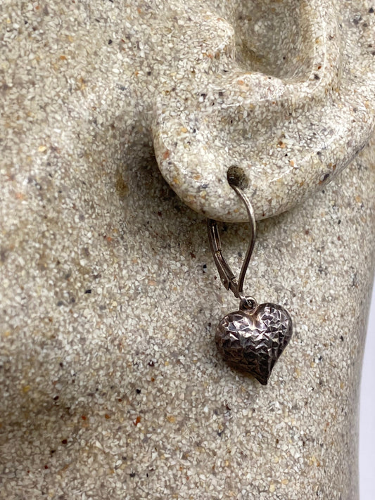 Vintage Heart 925 Sterling Silver Lever Back Ear Wire Earrings