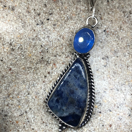 Vintage Silver Earrings | Blue Lapis Chalcedony Gemstone Antique Style Setting Silver Dangle Drop Chandelier Earrings