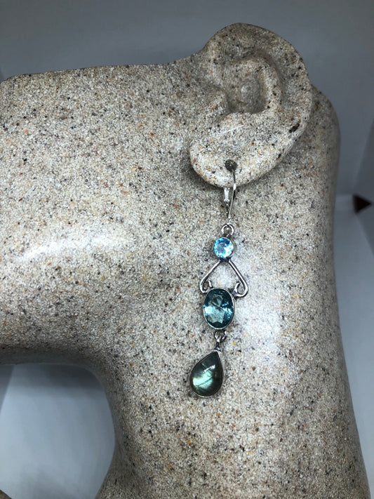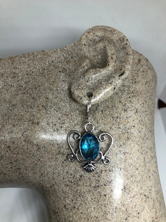 Vintage Silver Earrings | Blue Topaz Gemstone Antique Style Multistone Setting Silver Dangle Drop Chandelier Earrings