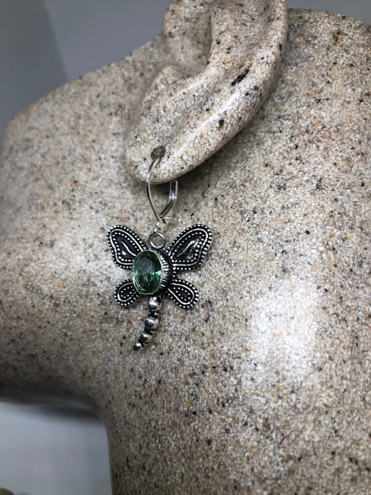 Vintage Silver Earrings | Genuine Green Amethyst Antique Style 925 Sterling Silver Setting Dangle Drop Chandelier Earrings