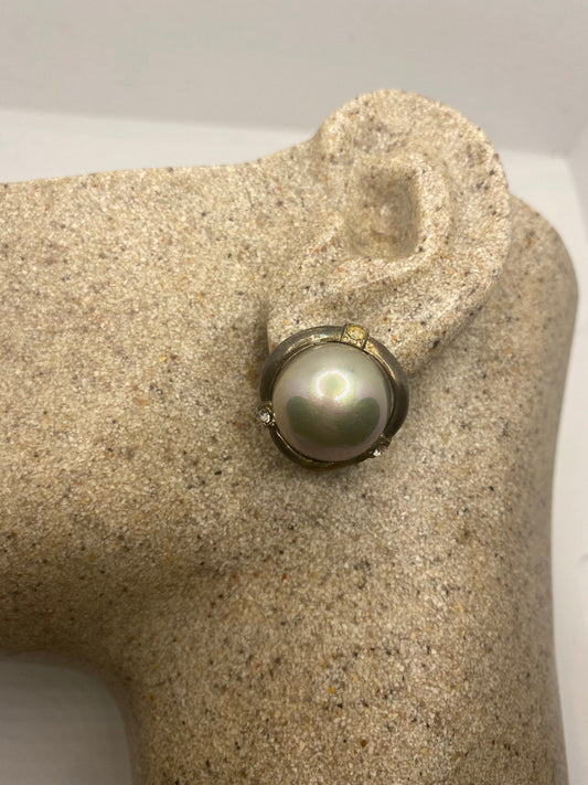 Vintage Genuine Pearl 925 Sterling Silver button Earrings