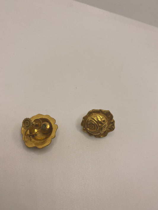 Vintage Lotus Flower Earrings Golden 925 Sterling Silver