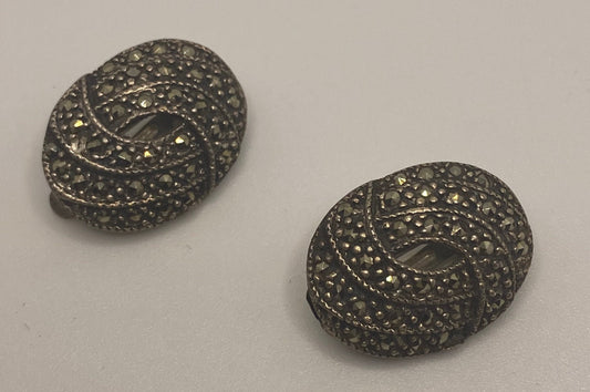 Vintage Marcasite 925 Sterling Silver Clip On Button Earrings