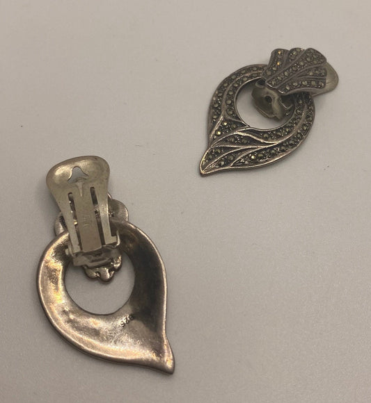 Antique Vintage Marcasite 925 Sterling Silver Clip On Button Earrings