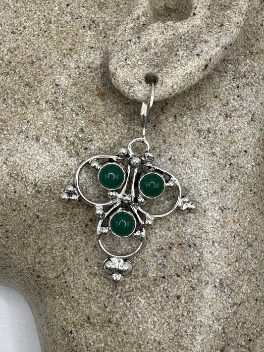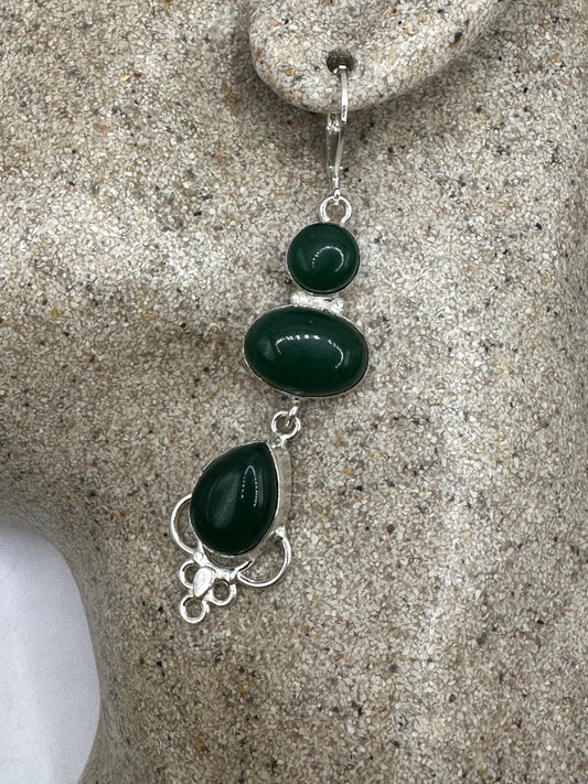 Vintage Green Crysoprase Silver Chandelier Earrings