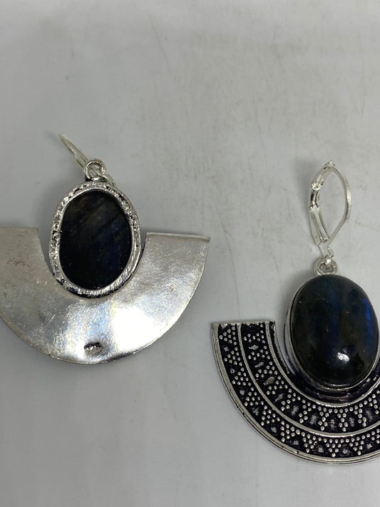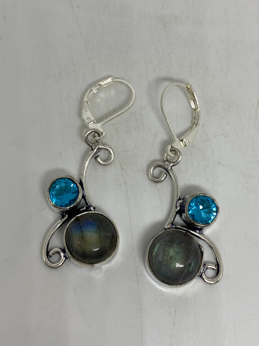 Vintage Rainbow Labradorite Blue Topaz Earrings Silver Dangle 925 Sterling Silver Leverbacks