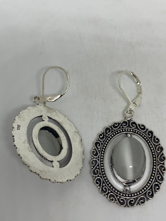 Vintage Sterling Silver White lab Cats Eye Lever Back Earrings