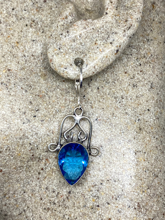 Vintage Blue Topaz LeverBack Earrings 925 Sterling Silver Dangle