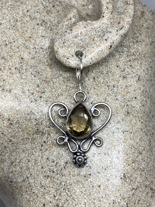 Vintage Smoky Topaz LeverBack Earrings 925 Sterling Silver Dangle